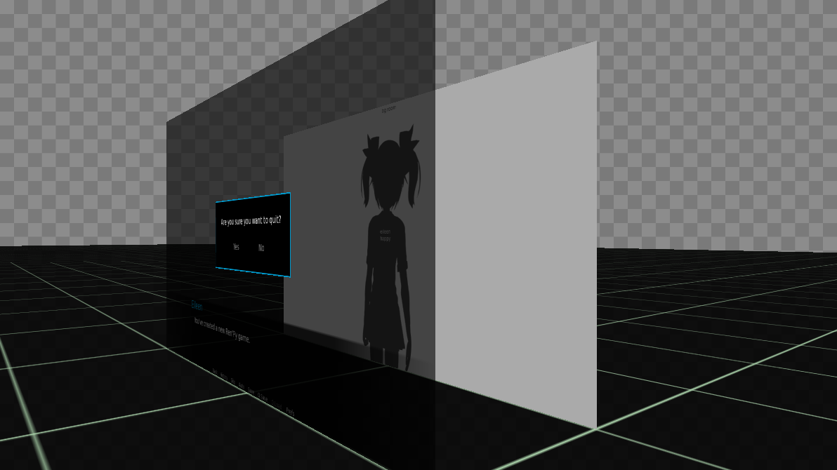 The confirm-to-quit screen appearing on the screens layer. You can see the rectangle used to darken the game whenever this shows up.